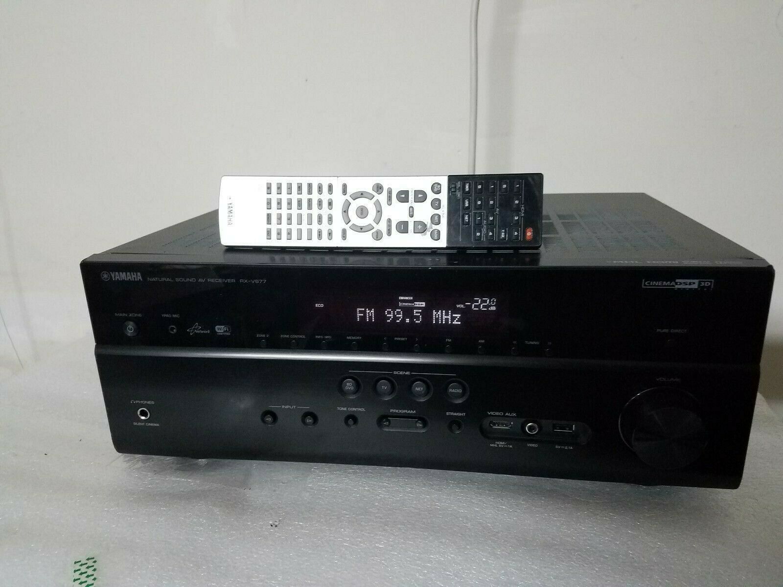 This is Yamaha 7.2Ch Network-Ready 4K Ultra HD HDMI(5 in/1 out)vHome Theater Receiver w/Remote RX-V677BL in good working condition.